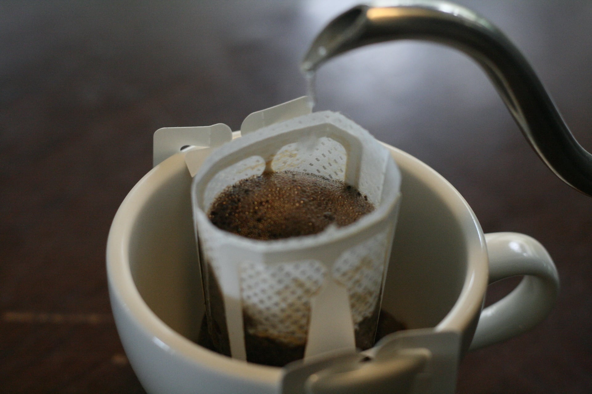 10~15秒ほど蒸らして、そのあとに160~180ccお湯を何度かに分けながら注いで出来上がりです。