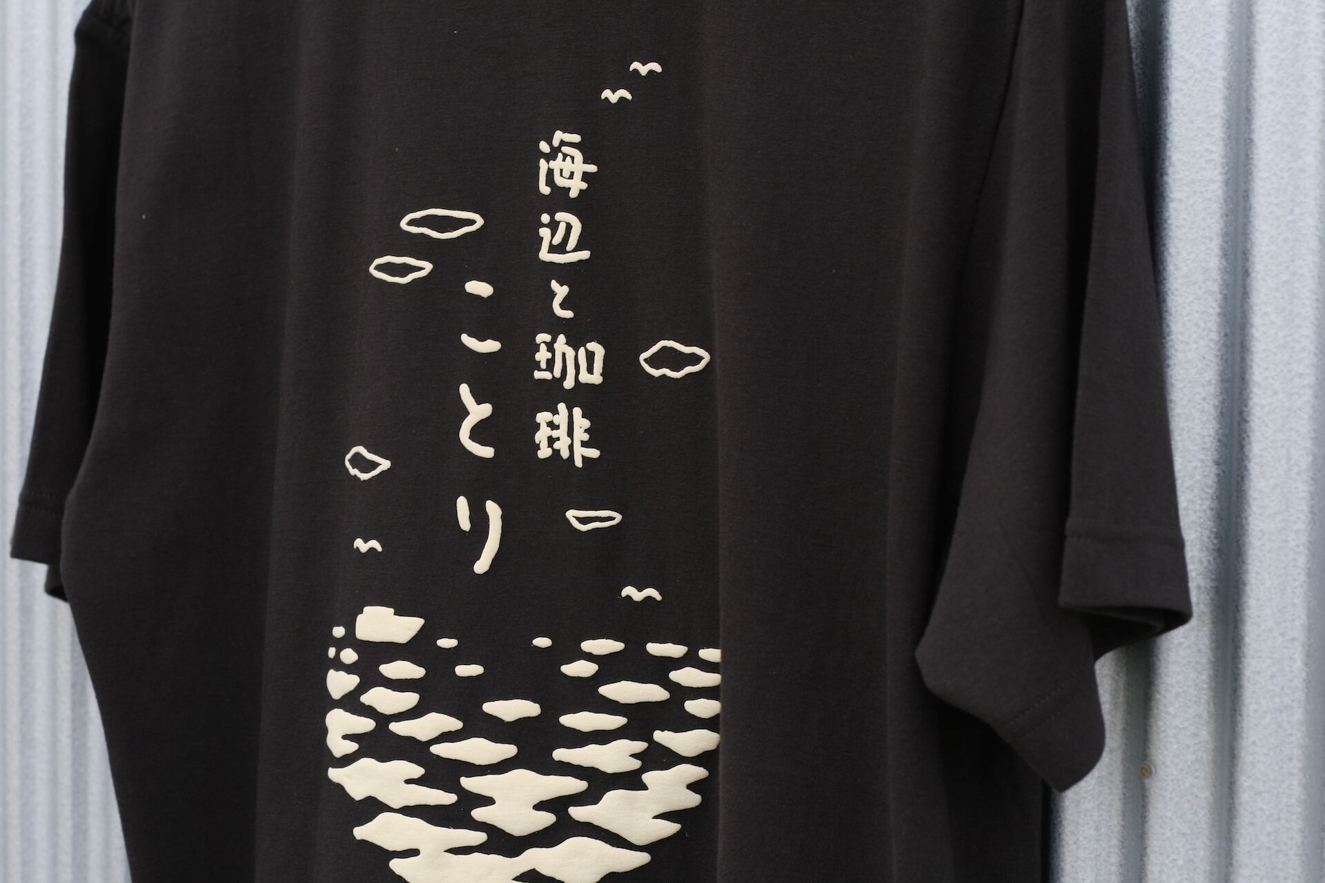 前面の左胸に『珈琲』、背中に当店のロゴマークがカフェオレっぽいベージュの発泡プリントであしらわれています。